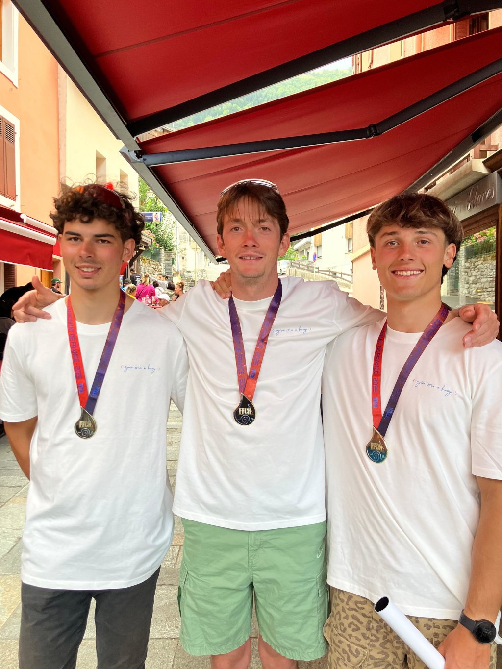 Maël Hervault, Jules Raoul et Axel Brossat sont champions de France de K1 M19 par équipes.